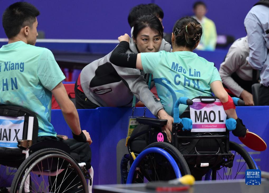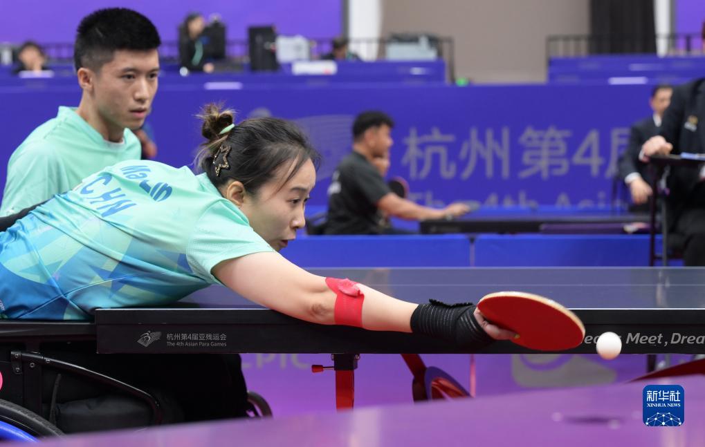 当日,在杭州第4届亚残运会乒乓球混合双打4级B组的比赛中,中国组合毛淋/翟翔迎战泰国组合奇尔西帕里亚克·布特旺西里纳/提拉育·楚阿翁。在比赛中,泰国选手频频使用近网短球战术,中国选手毛淋全力以赴,积极应对,不放弃任何机会,双方比分一度胶着。最终,毛淋/翟翔以2比3惜败。
