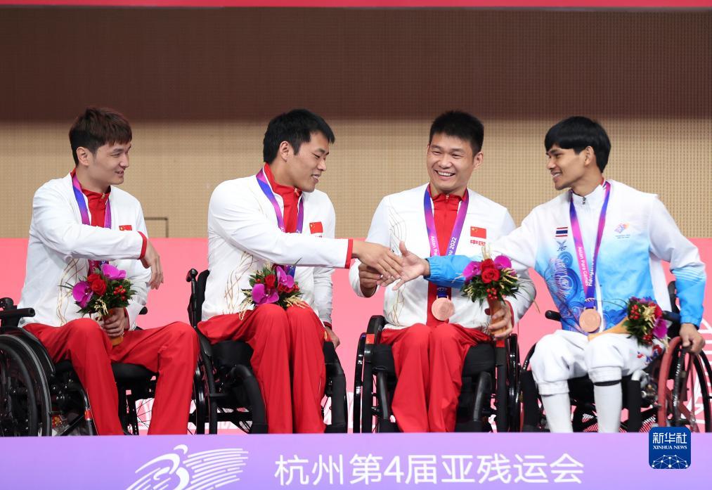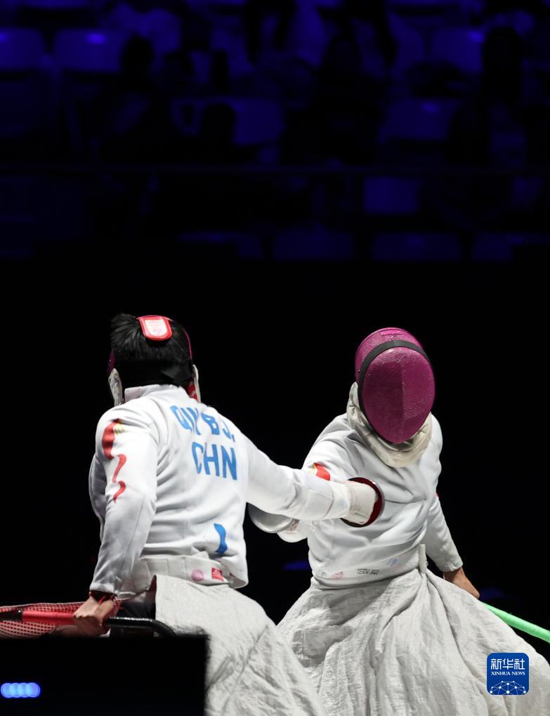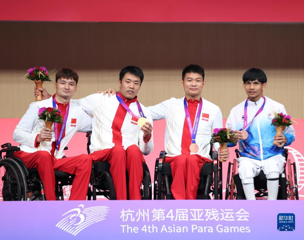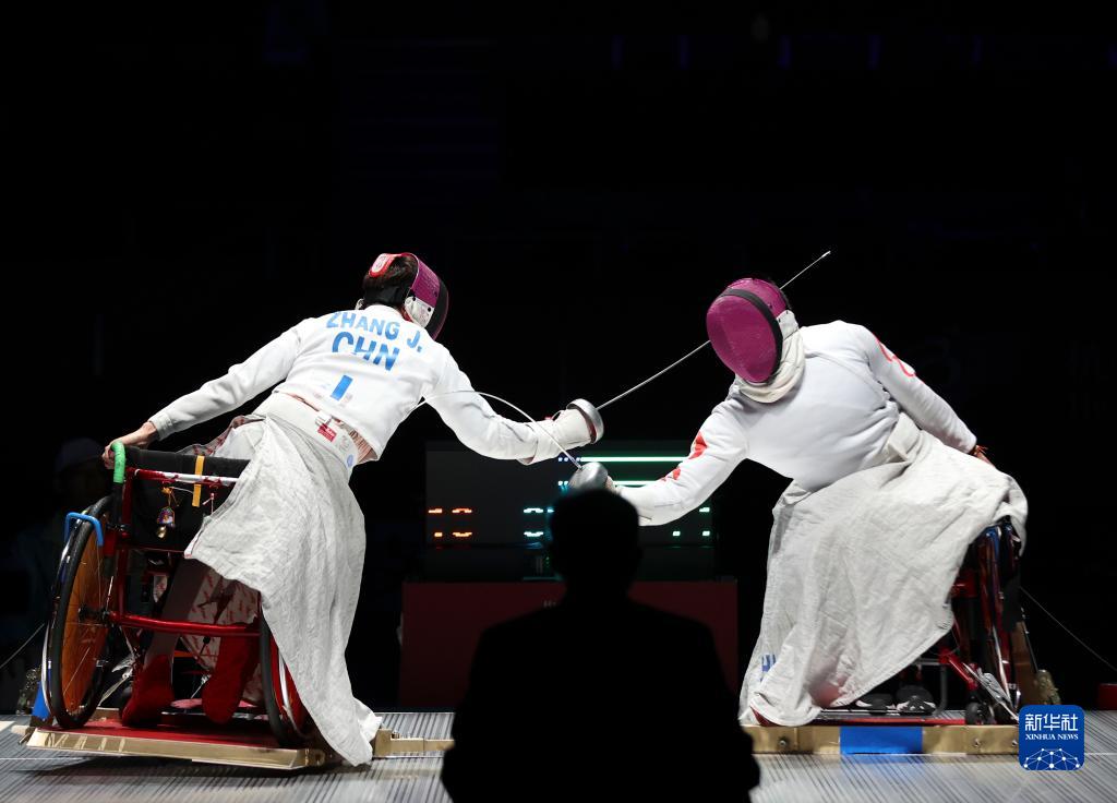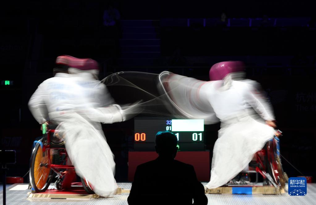 当日,在杭州第4届亚残运会轮椅击剑项目男子重剑个人B级决赛中,中国选手秦本军以15比13战胜队友张杰,夺得冠军。