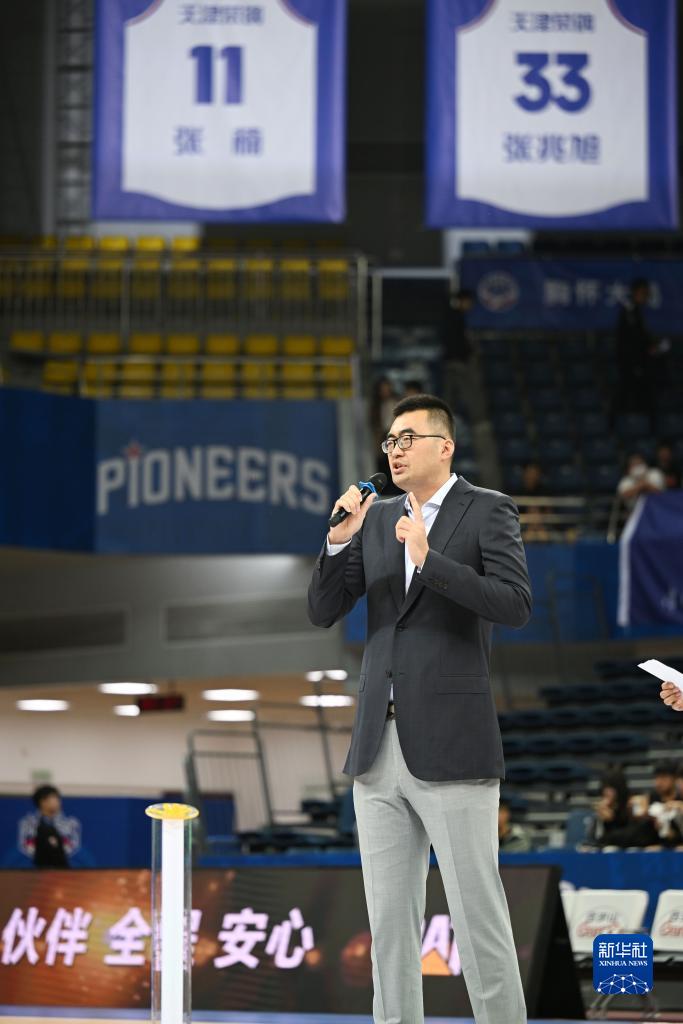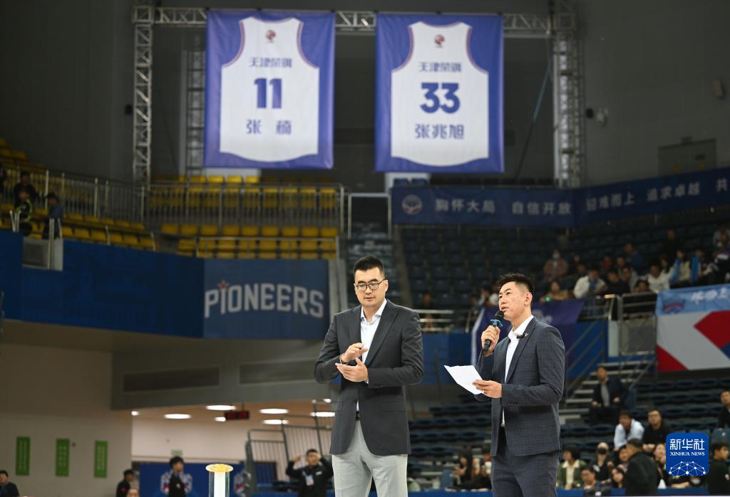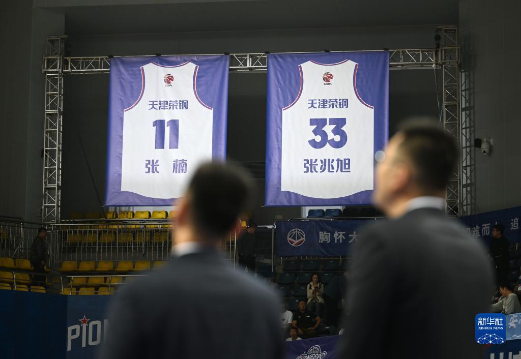 当日,在2023-2024赛季中国男子篮球职业联赛(CBA)常规赛第三轮天津先行者队主场对阵浙江广厦队的比赛前,天津先行者队为张兆旭和张楠两位前队员举办球衣退役仪式。