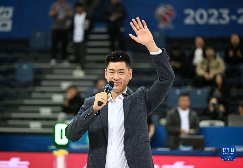 10月27日,张兆旭在球衣退役仪式上。新华社记者赵子硕摄