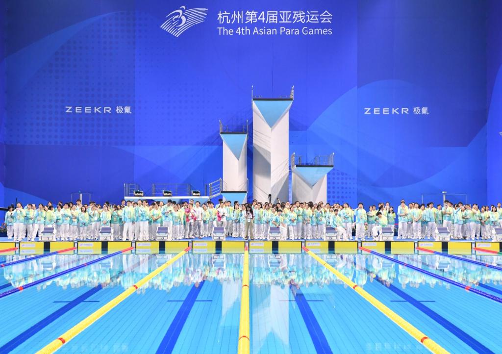 “青年志愿者们的热情、专业,他们身上积极进取的奋斗精神,让我很受感动和鼓舞。”谈起杭州亚残运会赛场内外的青年志愿者,里约和东京两届残奥会冠军、杭州亚残运会首棒火炬手谭玉娇说。