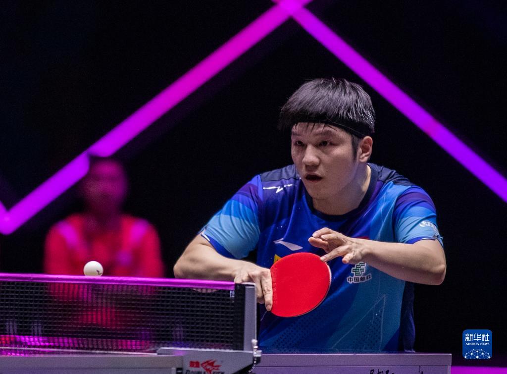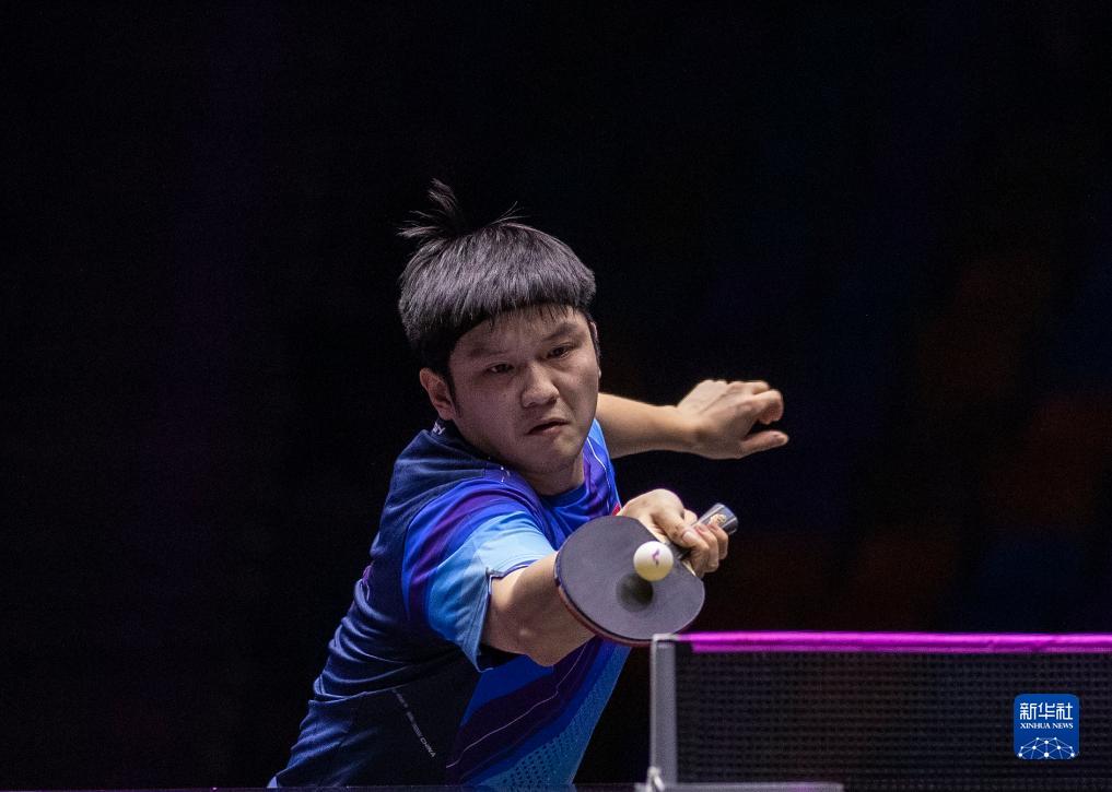 10月29日,樊振东在比赛中回球。新华社记者 张帆 摄