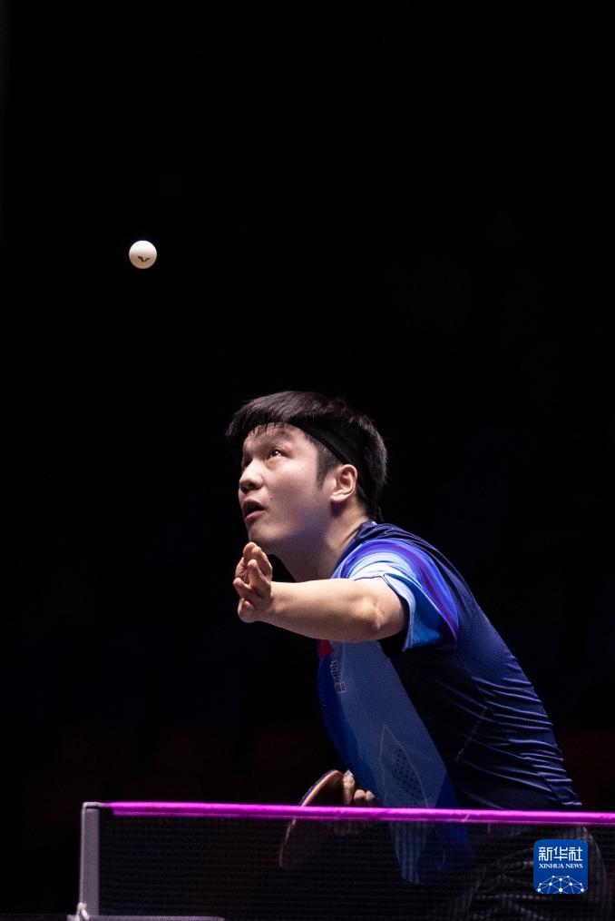 10月29日,樊振东在比赛中发球。新华社记者 张帆 摄