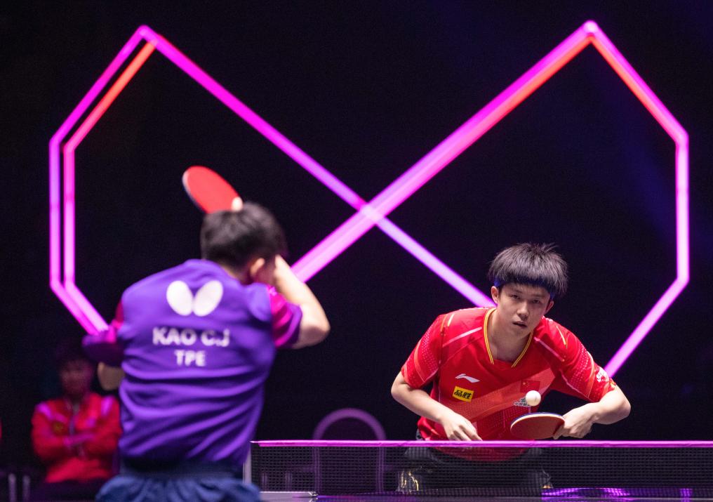 10月29日,王楚钦(右)在比赛中回球。新华社记者 张帆 摄