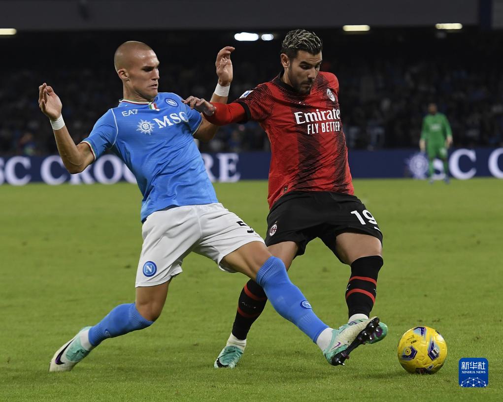10月29日,AC米兰队球员特奥·埃尔南德斯(右)与那不勒斯队球员厄斯蒂高在比赛中拼抢。新华社发(奥古斯托·卡萨索利摄)