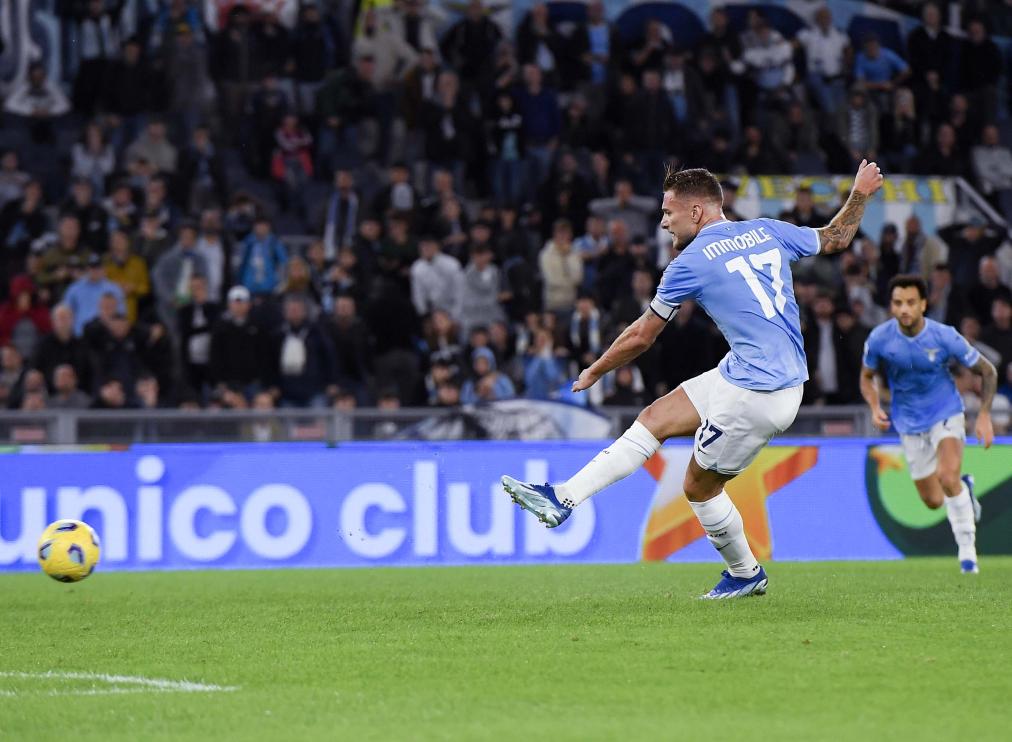 10月30日,拉齐奥队球员因莫比莱点球得分。新华社发(阿尔贝托·林格里亚摄)