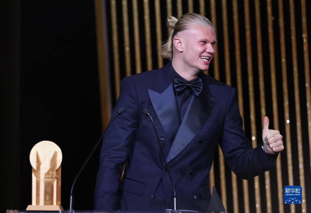 10月30日,挪威球员哈兰德获颁象征最佳前锋的盖德穆勒奖。新华社记者 高静 摄