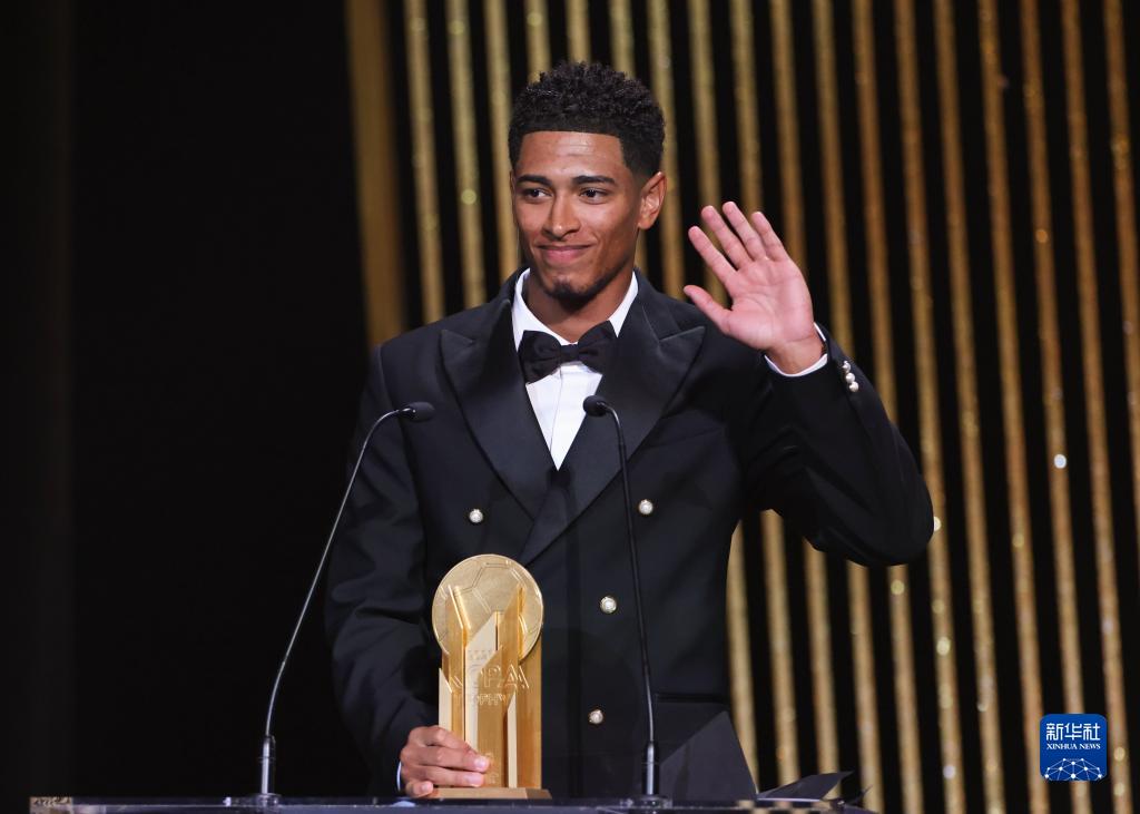 10月30日,英格兰球员贝林厄姆获得象征最佳21岁以下年轻球员的科帕奖。新华社记者 高静 摄