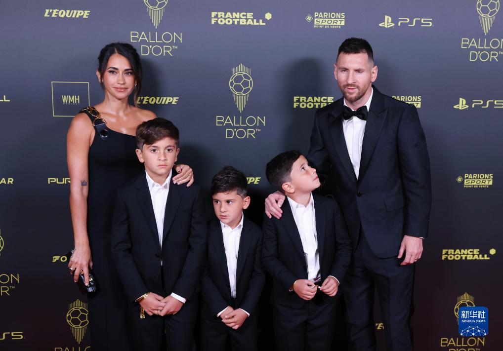 10月30日,梅西(右一)携家人抵达颁奖典礼现场。新华社记者 高静 摄