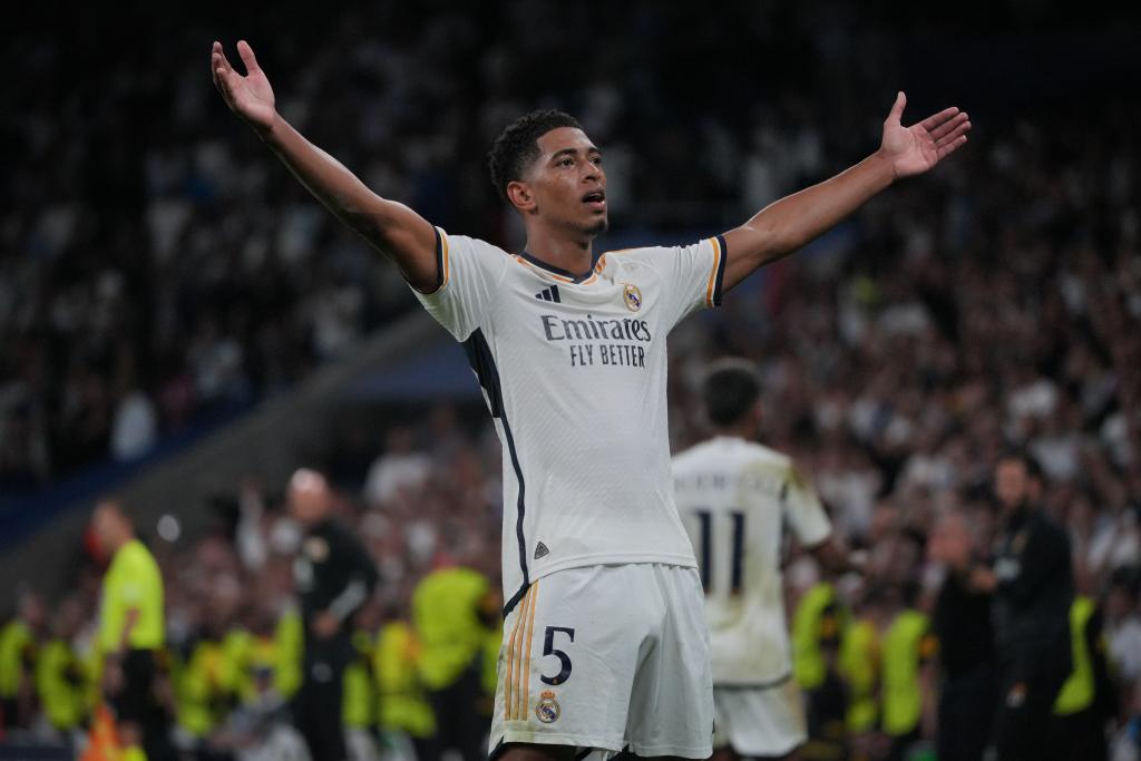 9月20日,皇家马德里队球员贝林厄姆在西甲比赛中庆祝进球。新华社发(张宇恒 摄)