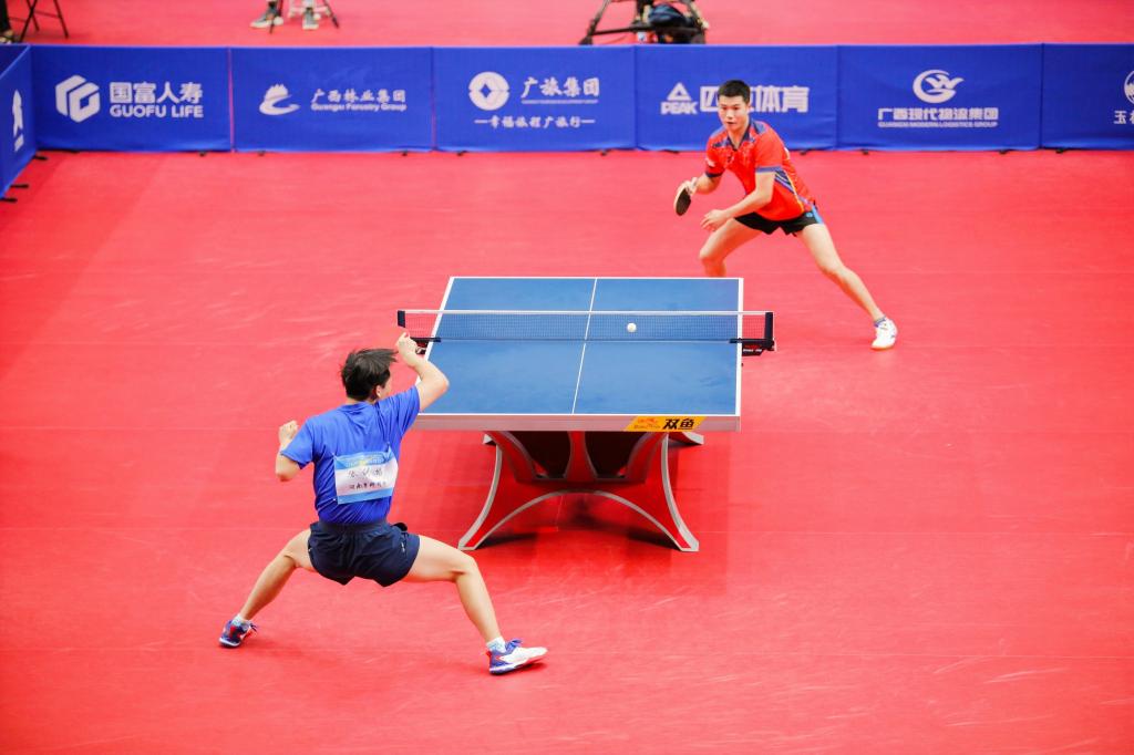 摆短、正手快拉、扣杀……在玉林市博白县体育中心体育馆,乒乓球公开组的比赛正激烈角逐。在为期7天的比赛中,来自全国各地38支代表队争夺七个项目的金牌。11月6日至11月12日,学青会乒乓球赛校园组的比赛也将在博白举行。