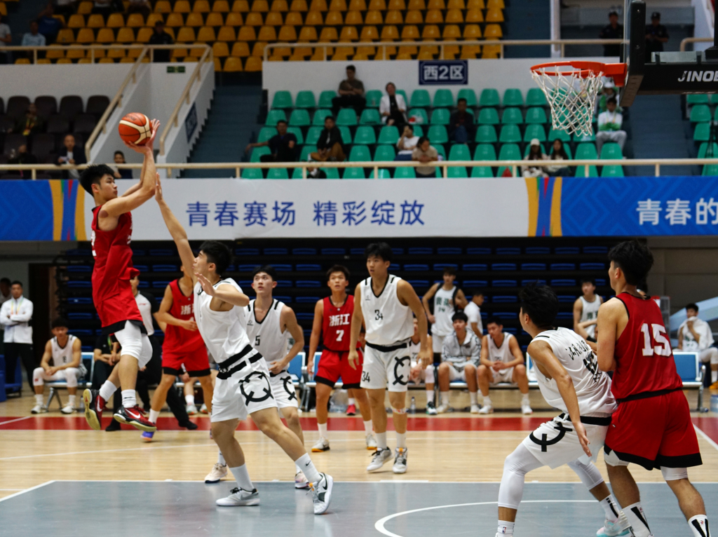 这是第一届全国学生(青年)运动会(校园组)篮球中学男子组小组赛的现场。