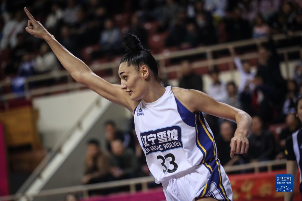 11月1日,辽宁双喜电器队球员安娜·波切克在比赛中庆祝。新华社记者 潘昱龙 摄