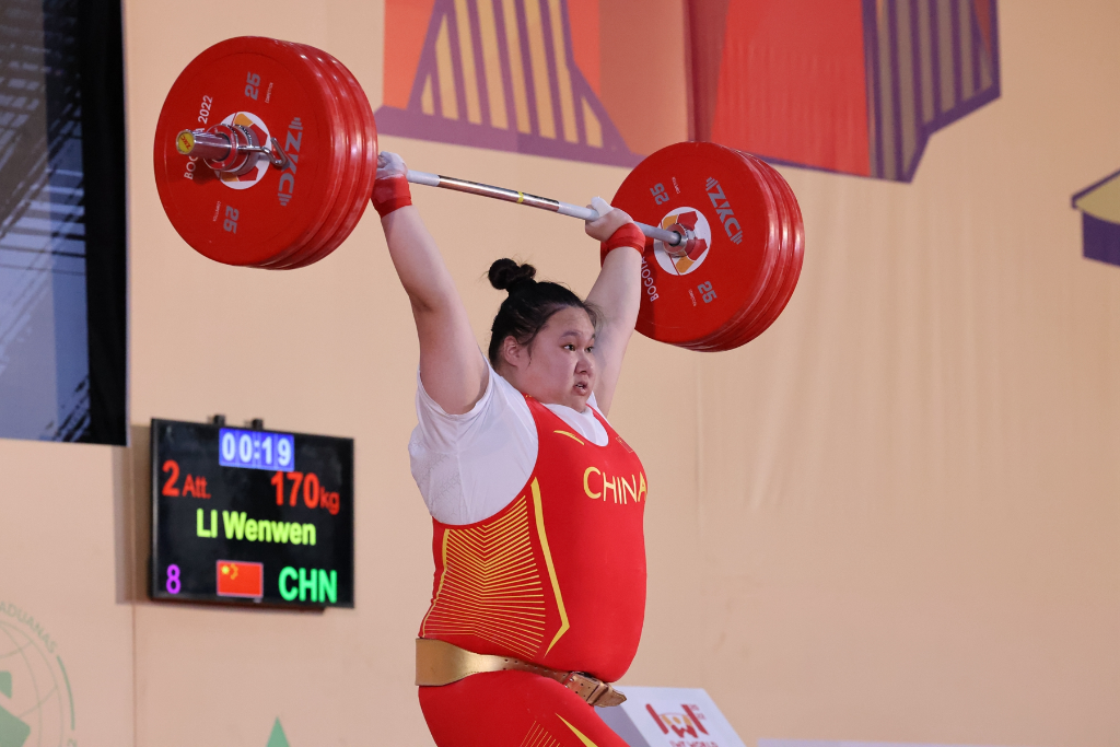 李雯雯在2022世界举重锦标赛女子87公斤以上级比赛中