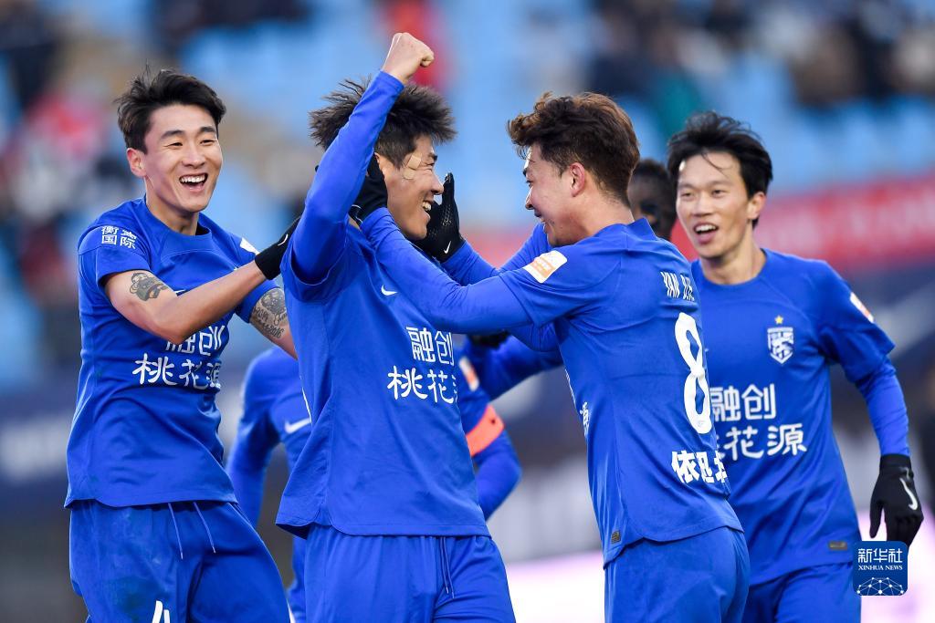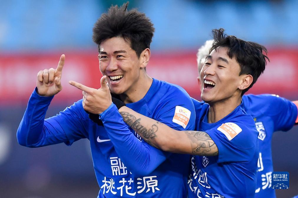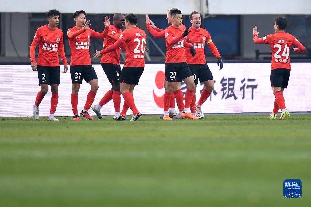 11月4日,长春亚泰队球员在比赛中庆祝进球。新华社记者 许畅 摄