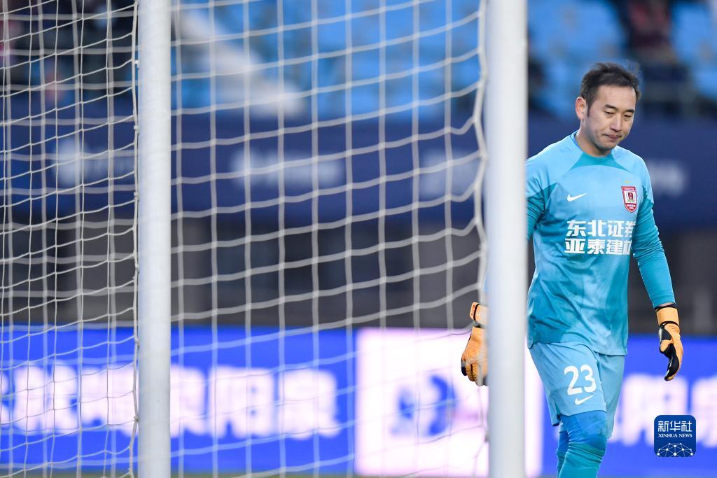 11月4日,长春亚泰队守门员吴亚轲在比赛中。新华社记者 许畅 摄