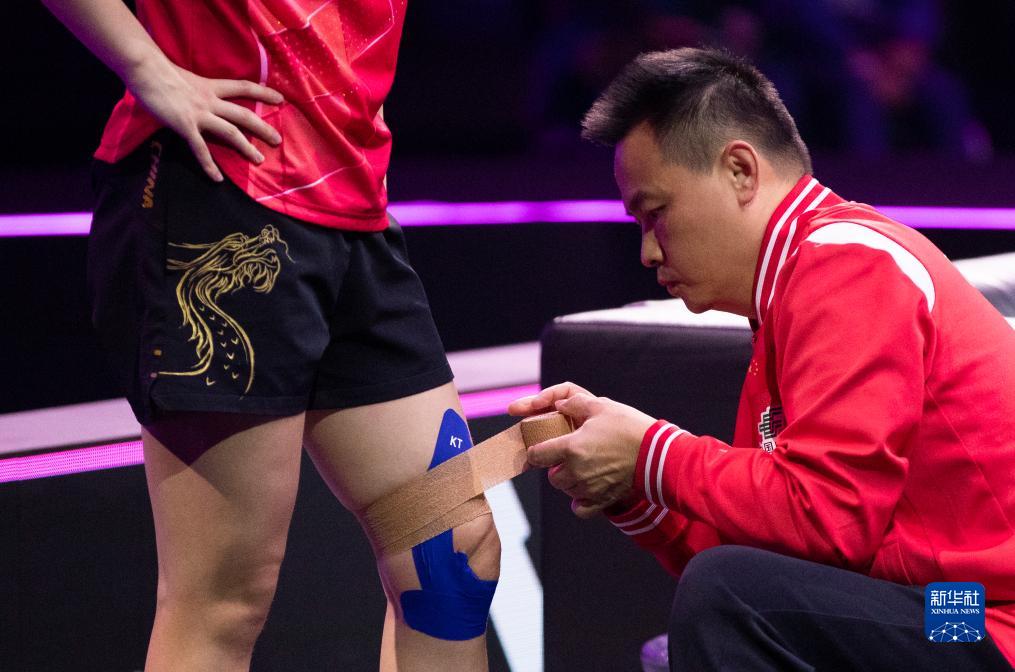 11月4日,王曼昱在比赛中受伤后接受治疗。新华社记者 张帆 摄