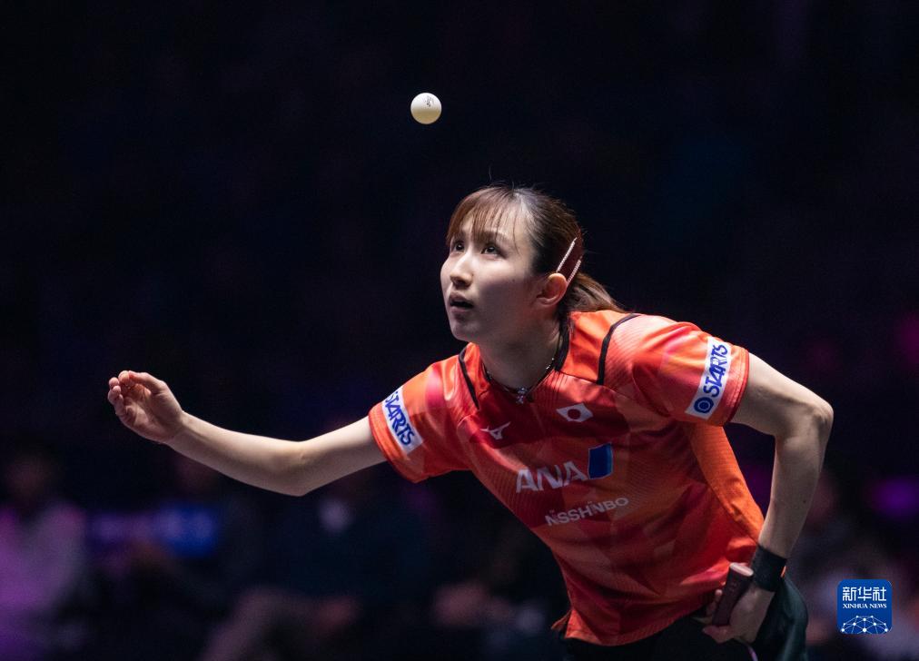 11月4日,早田希娜在比赛中发球。新华社记者 张帆 摄