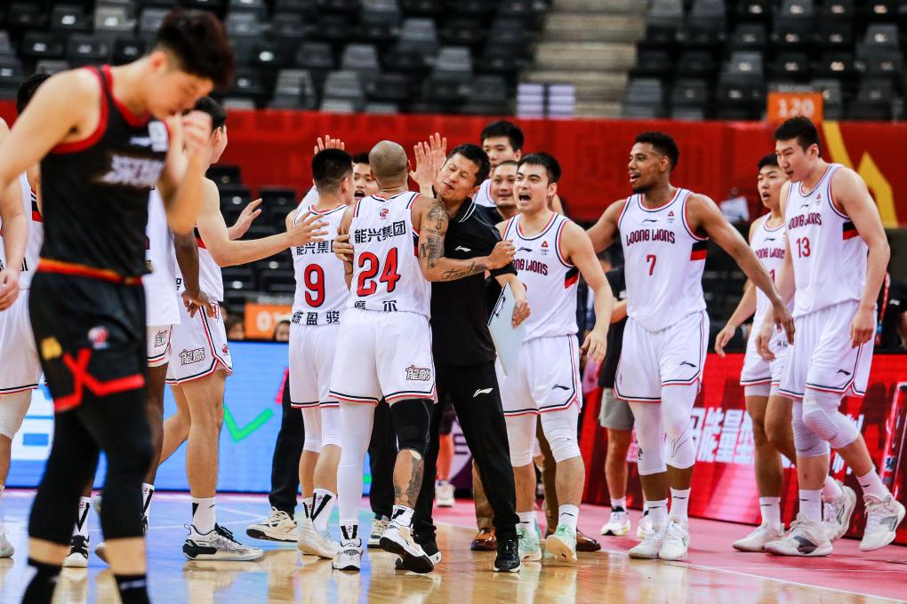 11月4日,广州龙狮队球员在比赛后庆祝胜利。新华社发(彭志刚 摄)