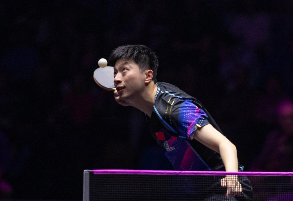 11月4日,马龙在比赛中发球。新华社记者 张帆 摄