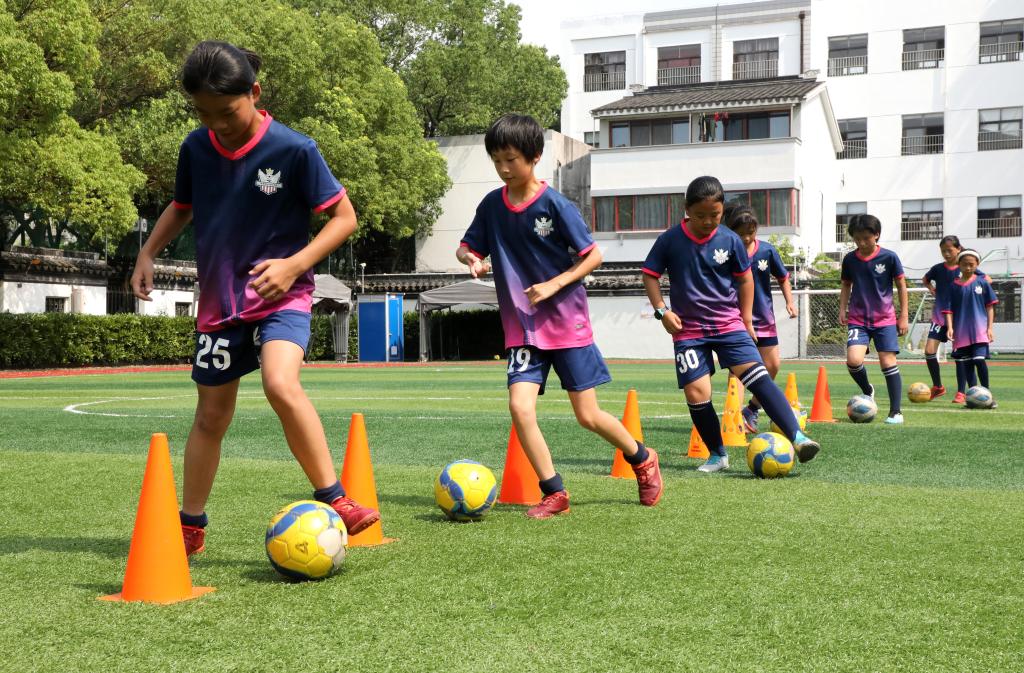 2022年7月15日,江苏省苏州市昇平实验小学校的女足队员在训练中。新华社发(杭兴微 摄)
