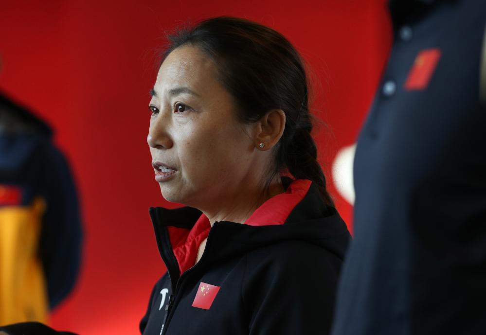 11月6日,速度滑冰国家集训队总教练李琰在训练前讲话。新华社记者 许雅楠 摄