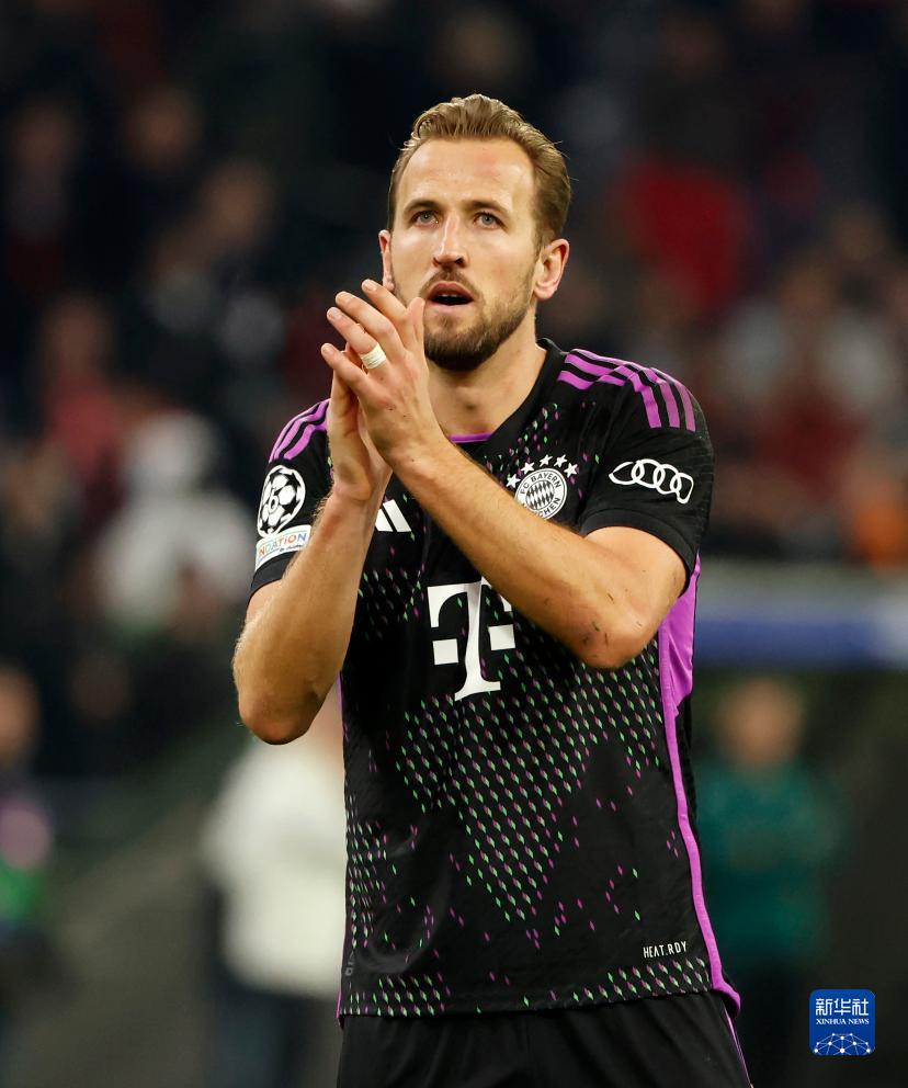 11月8日,拜仁慕尼黑队球员凯恩在比赛后向观众致意。新华社发(菲利普·鲁伊兹摄)