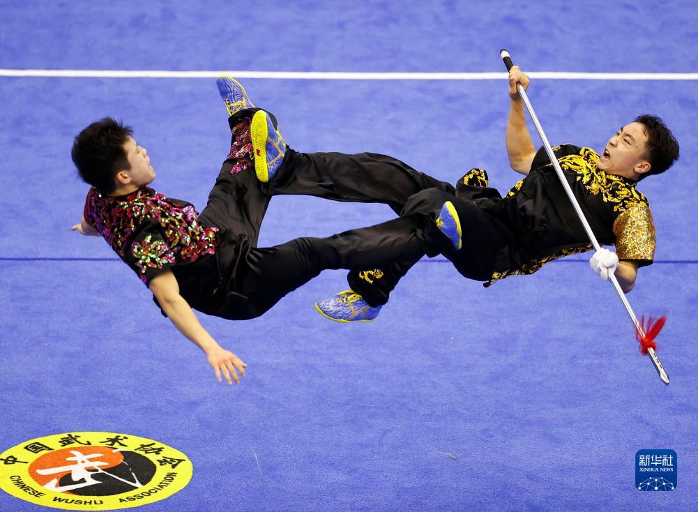 11月9日,天津队选手南永泉(上)与王联凯在比赛中。他们以9.700分的成绩与陕西队并列亚军。新华社记者 杨植森 摄