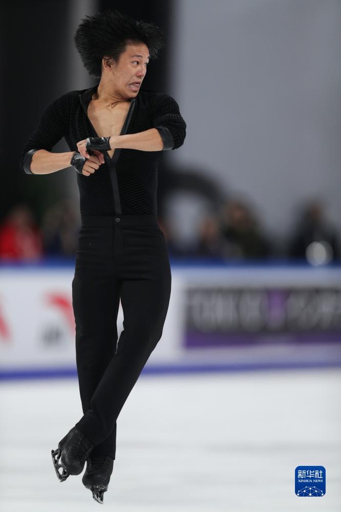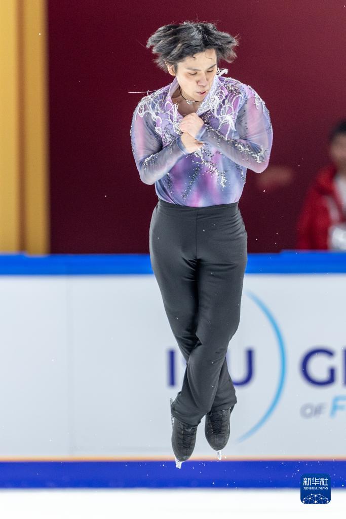 11月10日,日本选手宇野昌磨在比赛中。最终,他以105.25分的成绩暂列第一名。新华社记者 储加音 摄