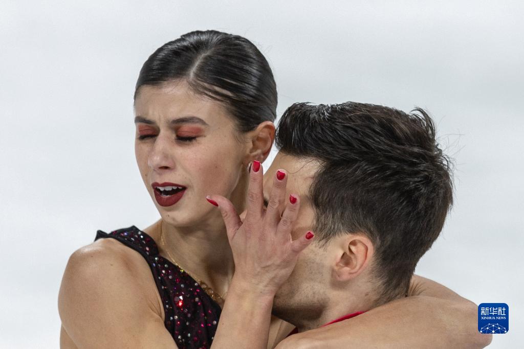 11月11日,中国组合彭程(左)/王磊在双人滑自由滑比赛中。最终,他们以178.06分的总成绩获得双人滑季军。新华社记者 储加音 摄