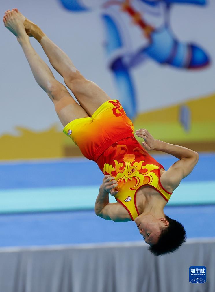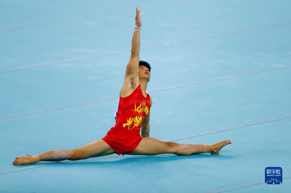 当日,第一届全国学生(青年)运动会(公开组)体操男子甲组自由操决赛在广西体育中心体育馆举行。