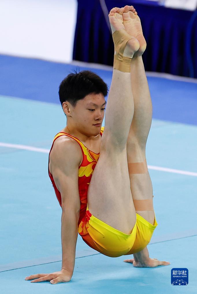 11月12日,福州选手王浩宇在比赛中。最终,他以13.500分的成绩获得亚军。新华社记者 杨植森 摄