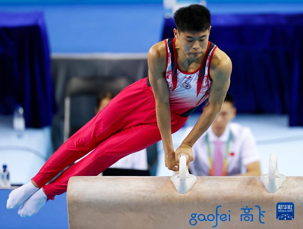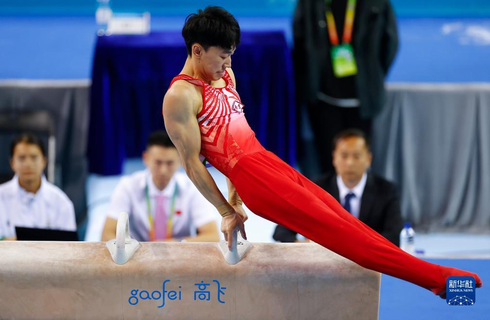 当日,第一届全国学生(青年)运动会(公开组)体操男子甲组鞍马决赛在广西体育中心体育馆举行。
