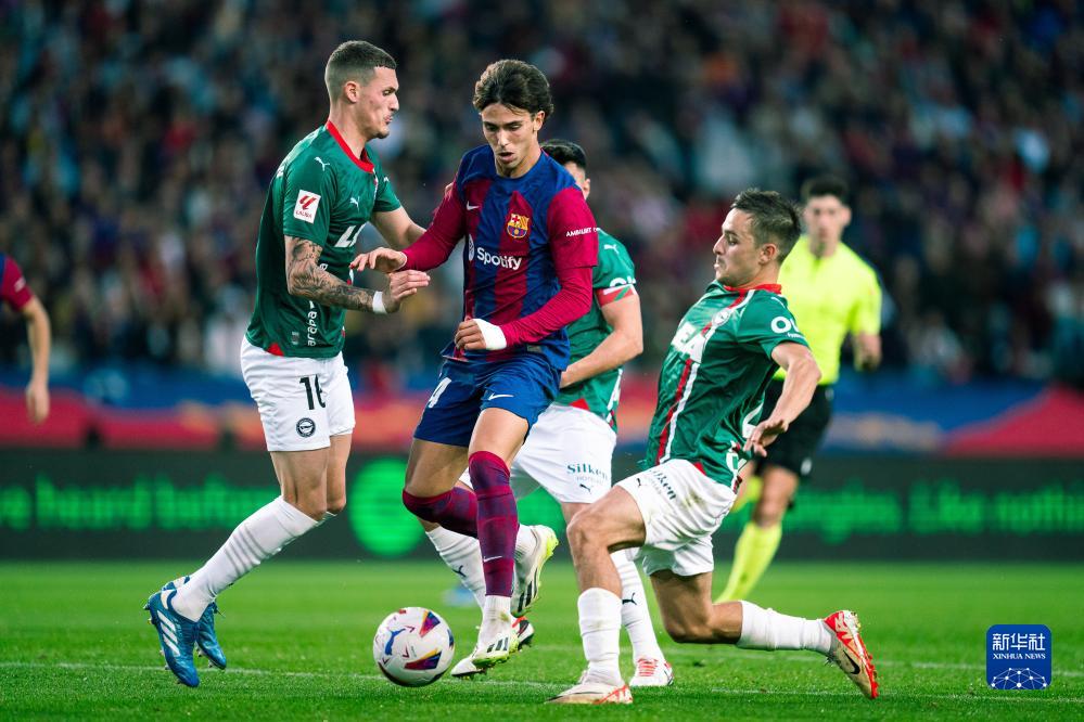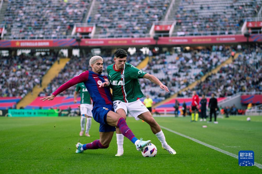 当日,在2023-2024赛季西班牙足球甲级联赛第13轮比赛中,巴塞罗那队主场以2比1战胜阿拉维斯队。