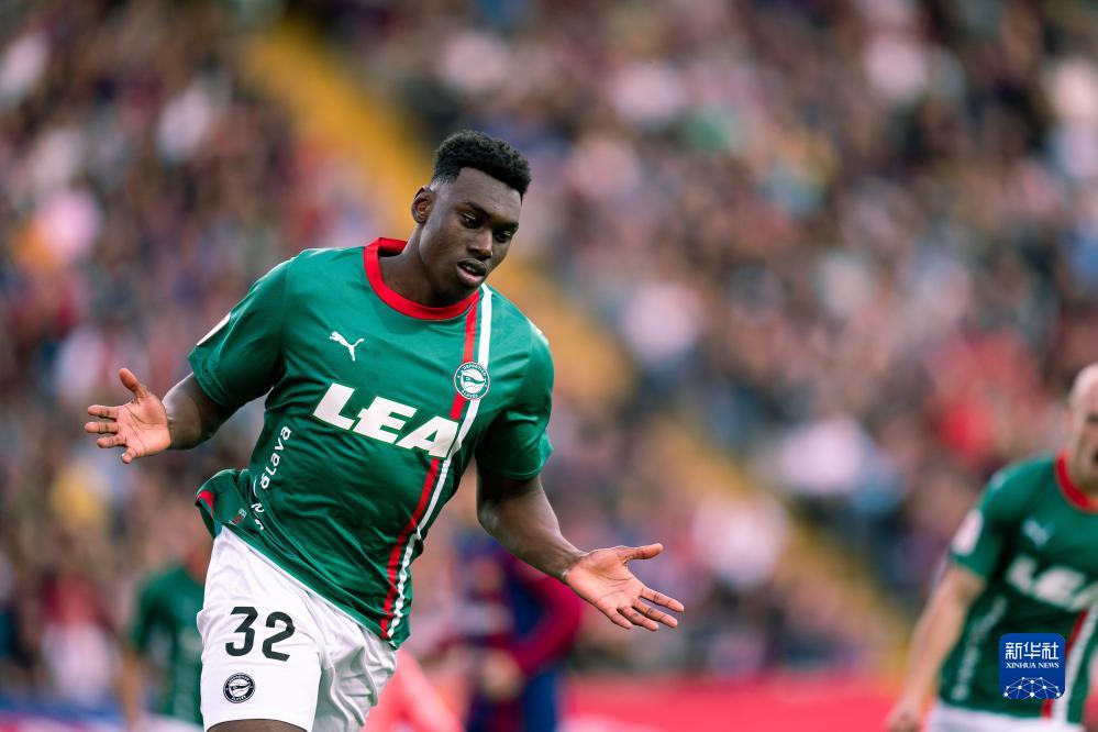 11月12日,阿拉维斯队球员奥莫罗迪昂在比赛中庆祝进球。新华社发(胡安·戈萨摄)
