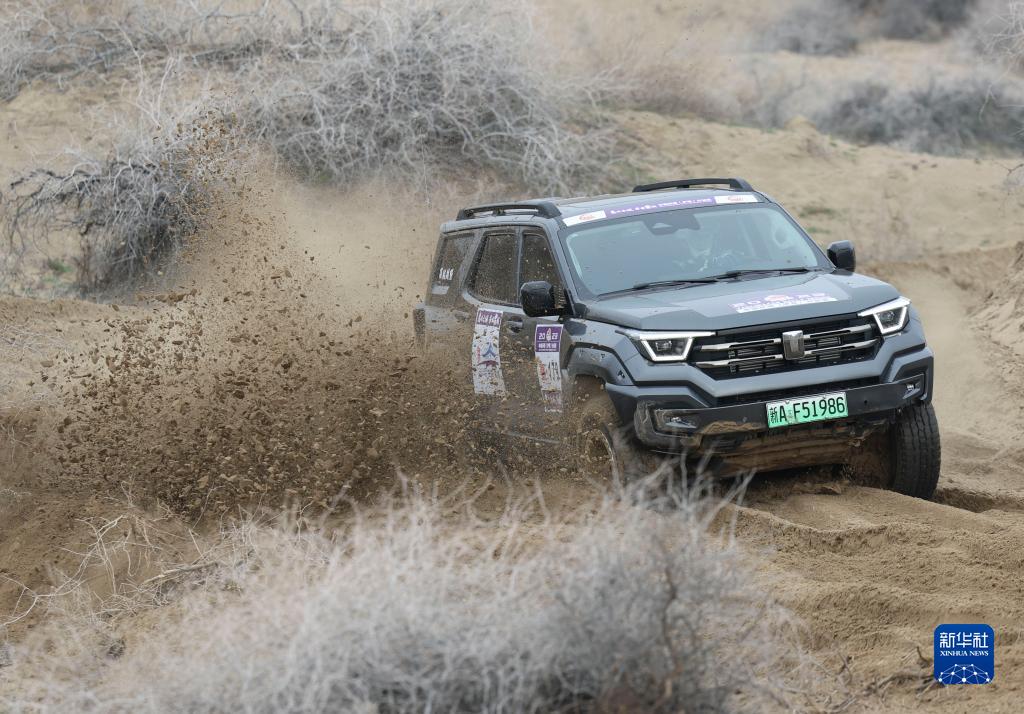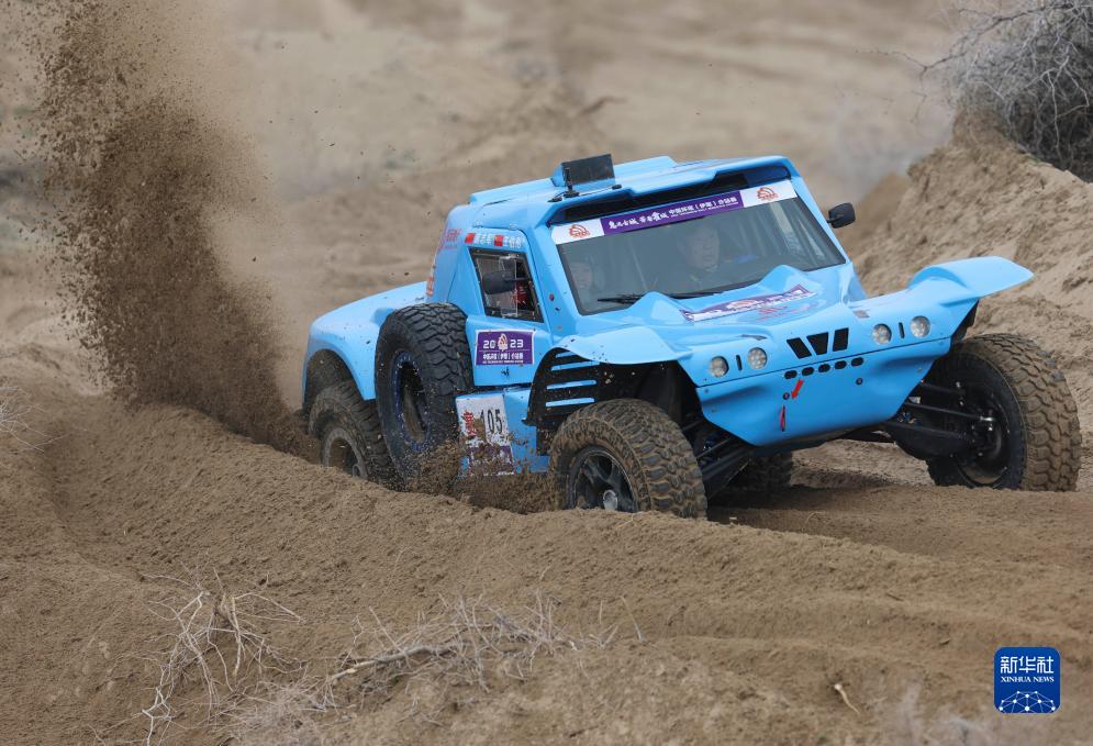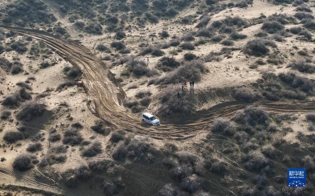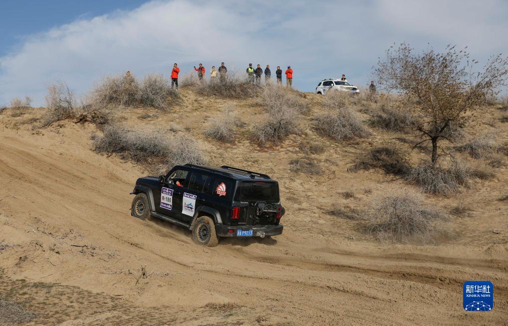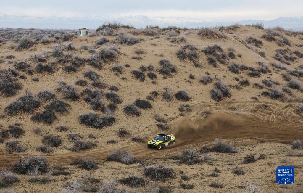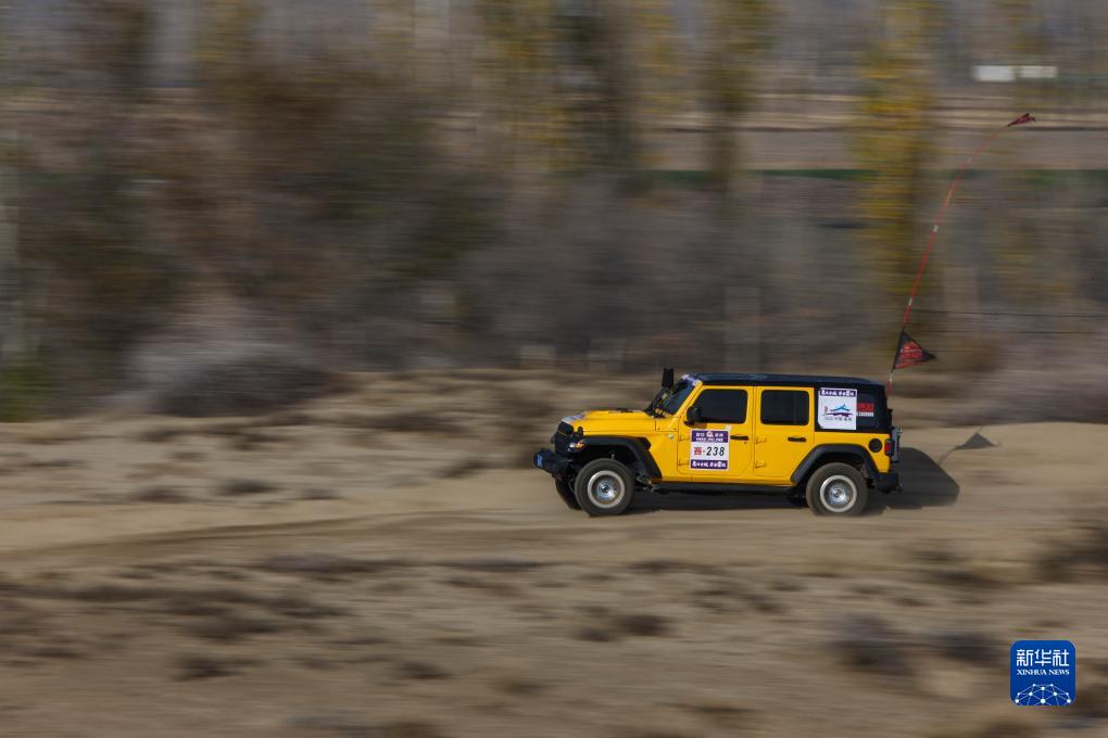 11月12日,车手龚逸驾驶赛车穿行在新疆霍城县图开沙漠中。新华社记者 胡虎虎 摄