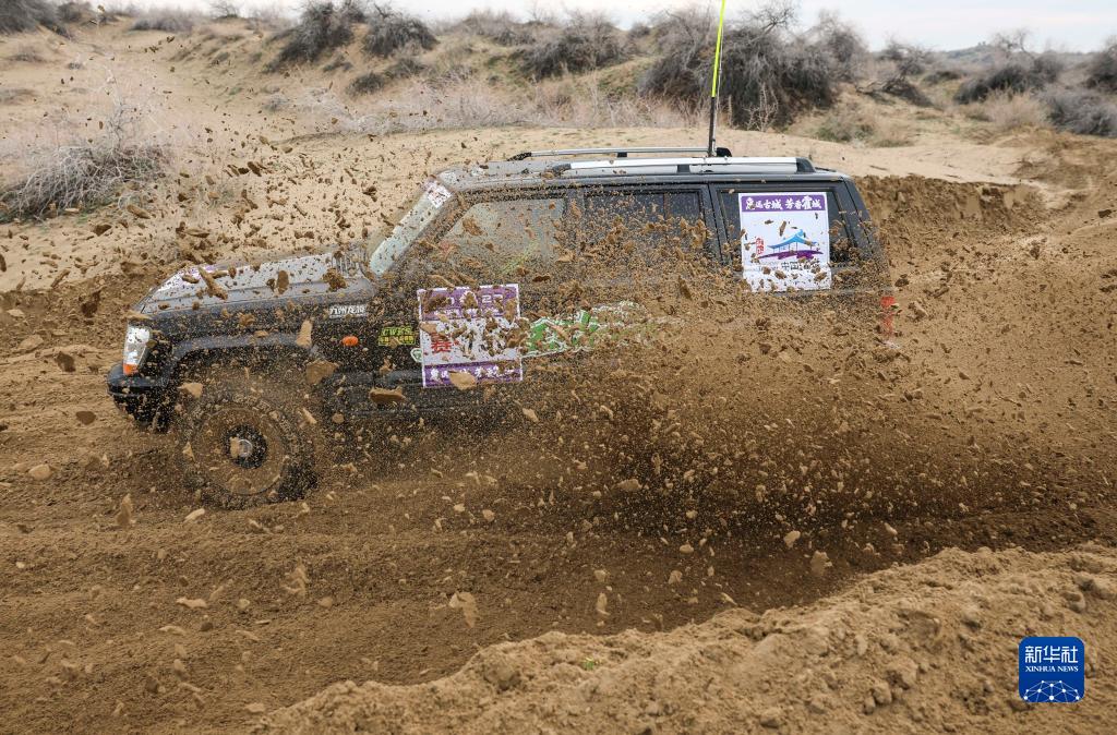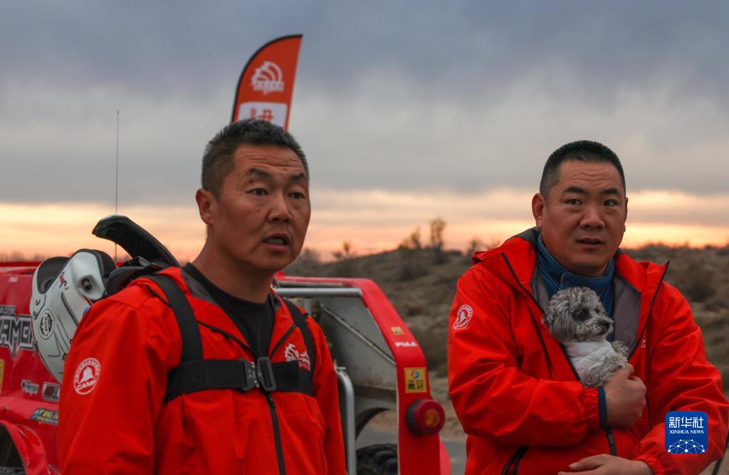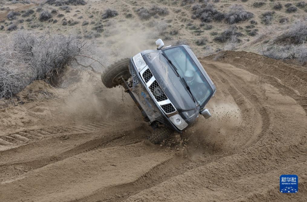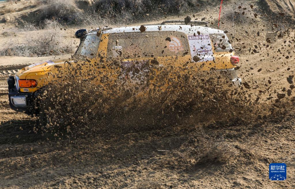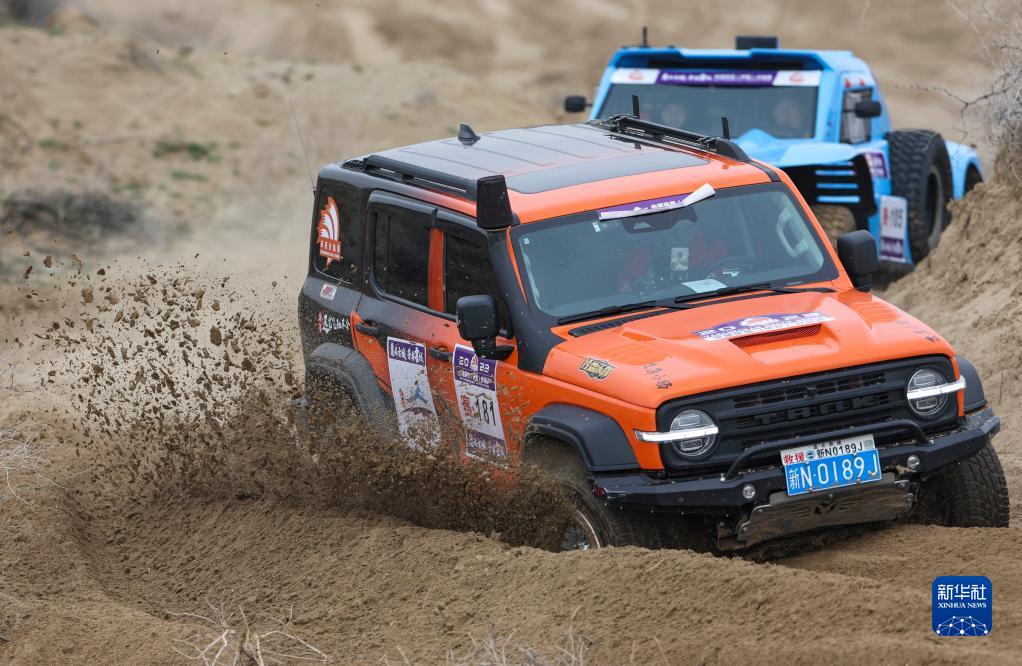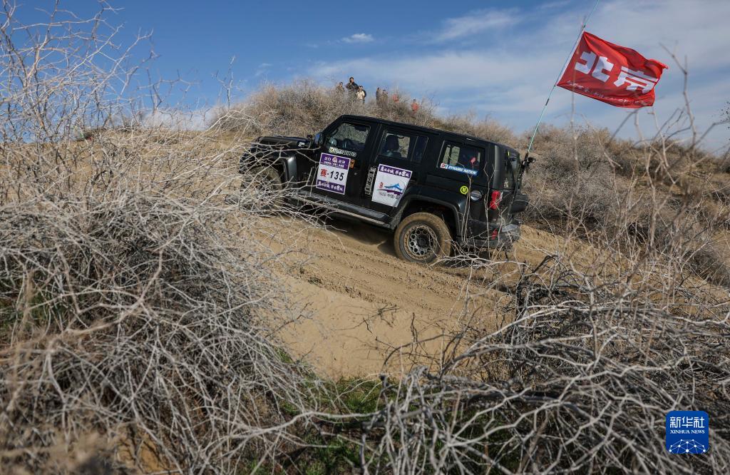 11月12日,车手龚逸驾驶赛车穿行在新疆霍城县图开沙漠中。新华社记者 胡虎虎 摄