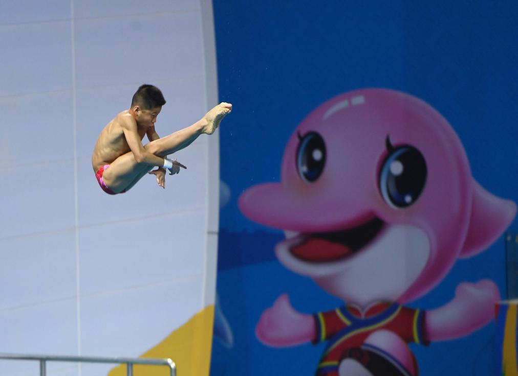 10月27日,第一届全国学生(青年)运动会跳水男子10米台决赛在广西南宁举行。新华社记者 周华 摄