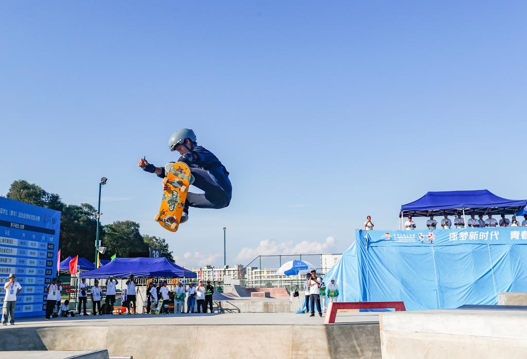 一个多月前的杭州亚运会上,15岁的陈烨横空出世,成为滑板项目男子碗池冠军,当时他在赛后接受采访时就表示,希望在学青会上也能取得好成绩。