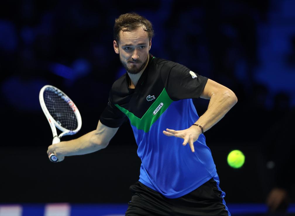 11月13日,梅德韦杰夫在比赛中回球。新华社发(阿尔贝托·林格里亚摄)