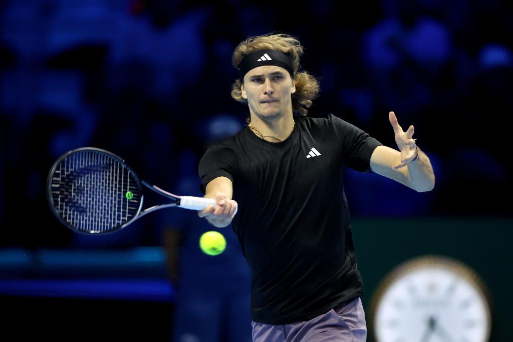 11月13日,兹维列夫在比赛中回球。新华社发 (阿尔贝托·林格里亚摄)