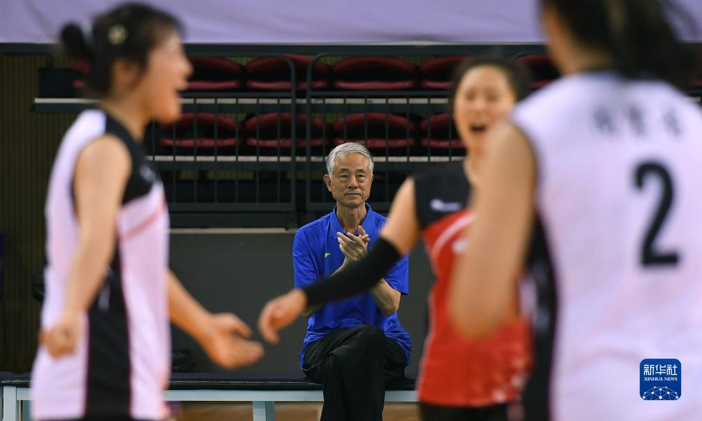 11月9日,郝振生(左)与球队年轻教练罗瑞(中)、蔡茂鑫观看对手比赛。现年67岁的郝振生执教球队40余年,如今已转为领队。新华社记者 侯昭康 摄