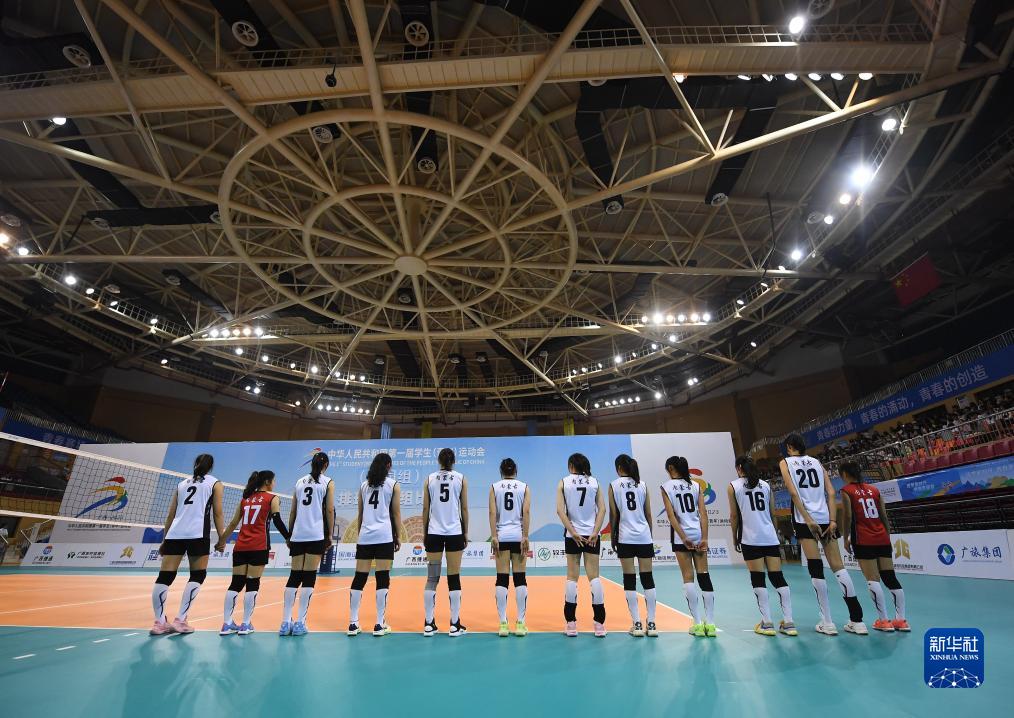 11月9日,包头一中女排队员赛前入场。新华社记者 侯昭康 摄