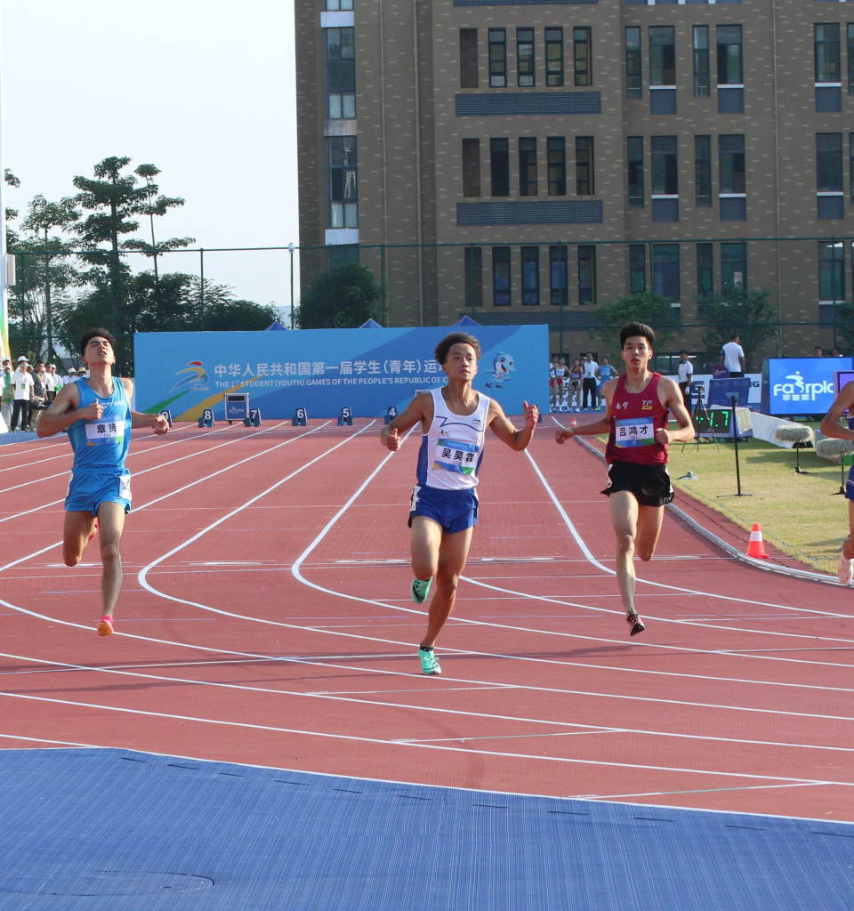 吴昊霖(中)在田径(公开组)男子100米决赛中。赛事组委会供图