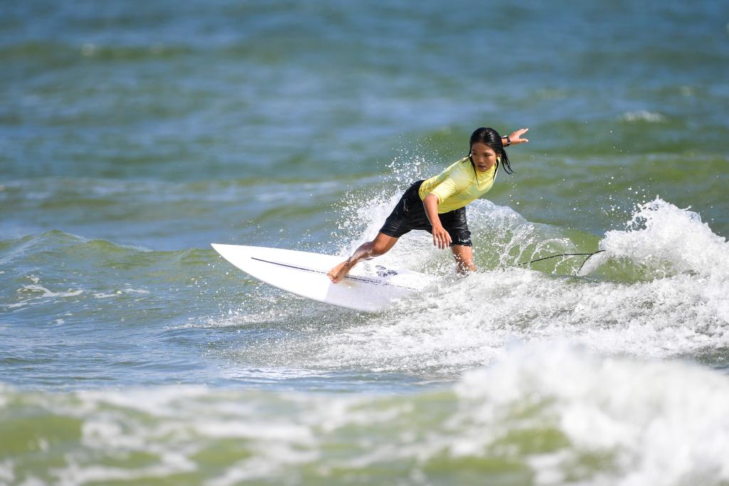 7月12日,第一届全国学生(青年)运动会冲浪项目女子短板决赛在广西北海市举行。新华社记者 曹祎铭 摄