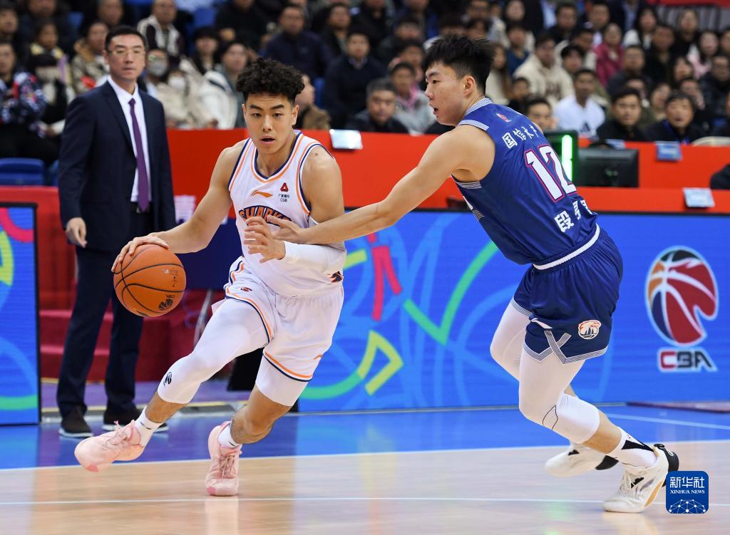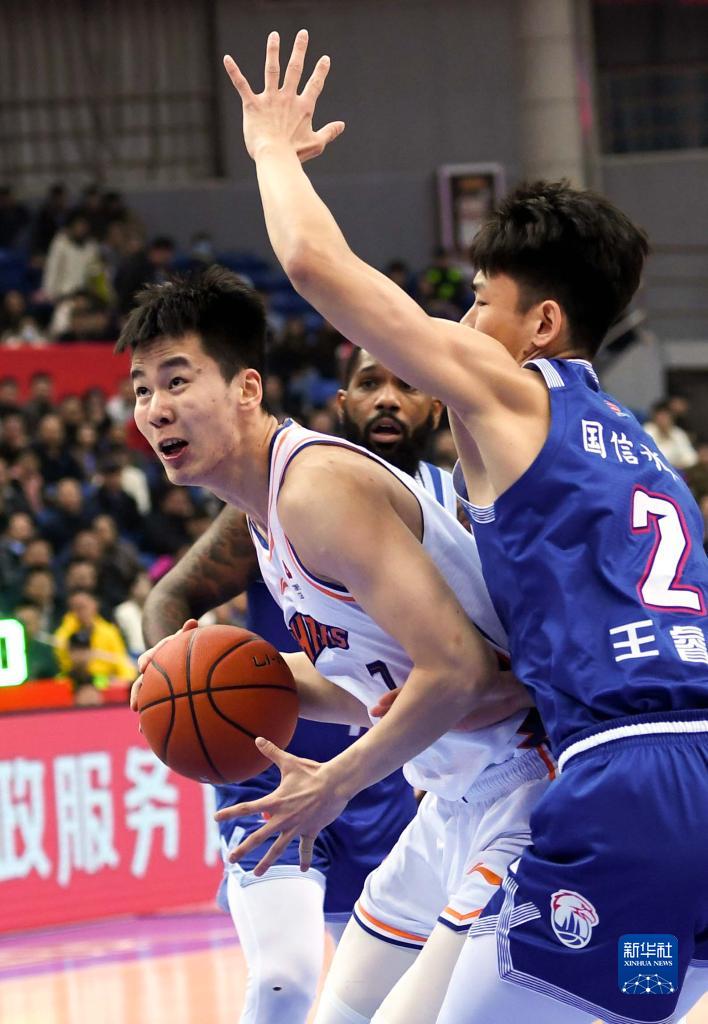 11月15日,上海久事队球员郭昊文(左)在比赛中进攻。新华社记者 李紫恒 摄