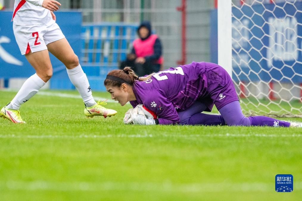 11月15日,长春大众卓越队守门员程雨情在比赛中扑救。新华社发(杜子璇摄)