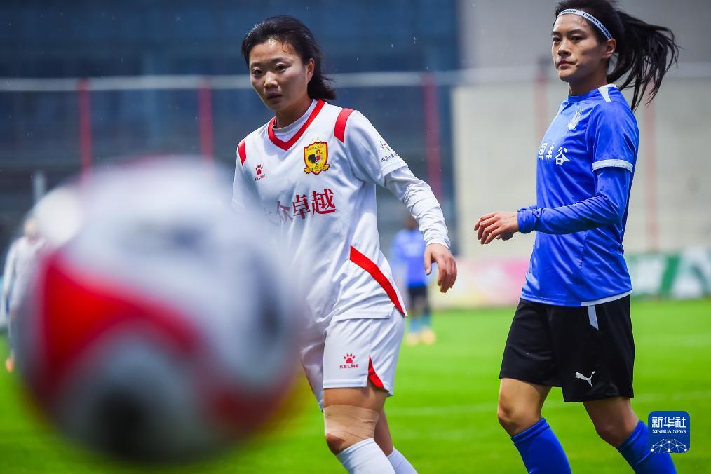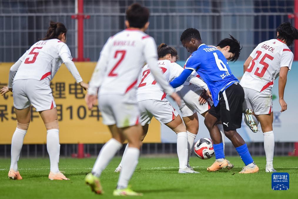 11月15日,长春大众卓越队球员赵莹莹(右一)在比赛中射门。新华社记者 伍志尊 摄