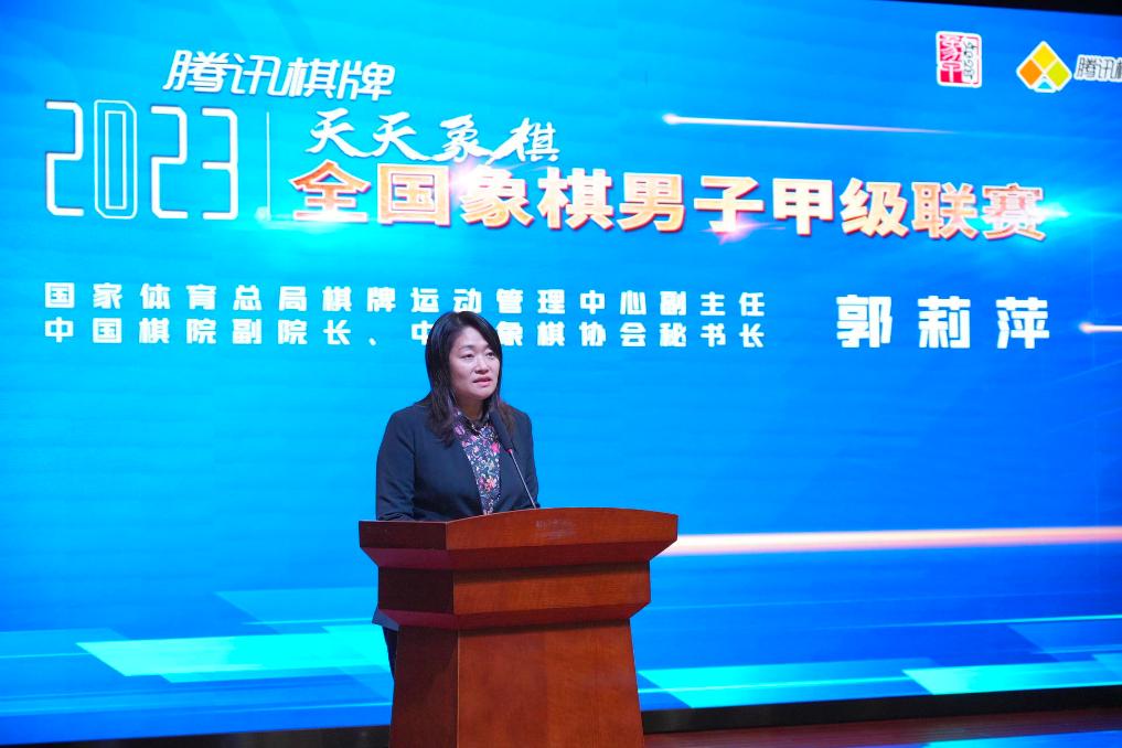 国家体育总局棋牌运动管理中心副主任、中国棋院副院长、中国象棋协会秘书长郭莉萍为四川队颁奖,她表示,象甲联赛是顶级象棋职业赛事,伴随着短视频直播平台兴起,联赛在腾讯公司的支持下,通过持续创新与改革,职业化和市场化程度大大提升;通过转播技术和数字化棋谱的革新,联赛的影响力也进一步扩大。联赛已经成为中国象棋协会直接服务爱好者的品牌赛事,有效满足了广大象棋爱好者的观赛需求。