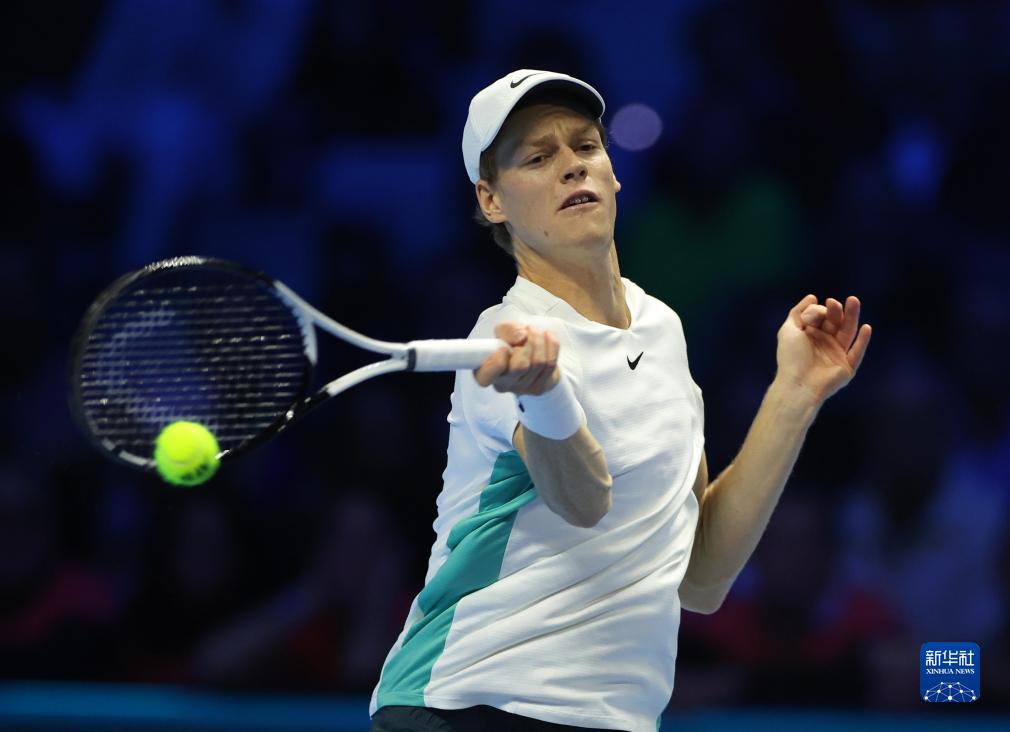 11月16日,辛纳在比赛中回球。新华社发(阿尔贝托·林格里亚摄)